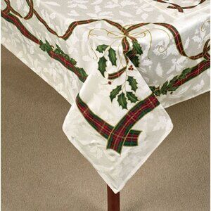 Vintage Lenox American By Design Holiday Nouveau Tablecloth Plaid Ribbons 58X102