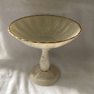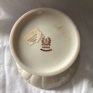 Like new. No chips or cracks. Has the original sticker on the bottom. Made in USA. Trimmed in gold.