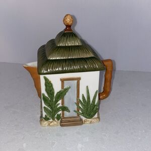 Vintage Lenox Chuck Fischer British Colonial Scenic Porcelain Tea Pot / Creamer Tropical Hut Theme