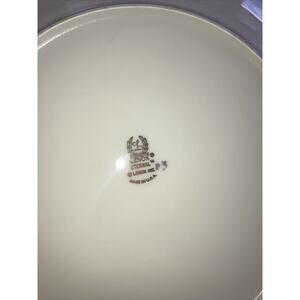 This vintage Lenox dinner plate is a timeless addition to any table setting. The ivory and gold color combination, along with the wide gold trim and gold verge, gives it an elegant and sophisticated look. Made of high-quality porcelain, this round plate has a diameter of 10.75 inches and features an original backstamp from the late 20th century.