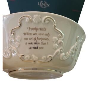 Vintage New In Box Lenox Footprints In The Sand Poem Printed on 2 Sides and Bottom Embossed Bowl.