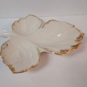 Ivory with Gold Maple Leaf Divided Candy or Trinket Dish/Tray.