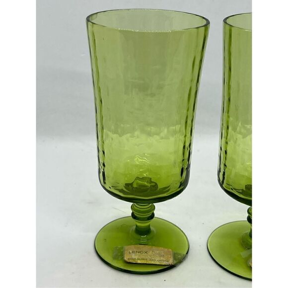 Vintage Lenox Handblown Set Of 2 Green Wine Glasses Lead Crystal Made in USA