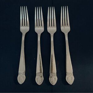 This set of four Lenox forks adds elegance to any dining setting with their intricate leaf design and durable 18/8 stainless steel construction.