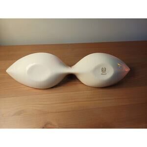 Vintage Lenox “Made in USA” porcelain double serving bowl. Two curved “leaf‐style” bowls joined in the centre, finished in ivory white glaze. Measures approximately 12.5” long × 3.5” wide × 3” tall. Excellent condition — no chips, cracks or damage. Made in USA by Lenox.