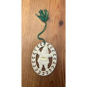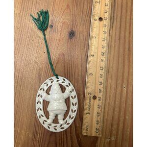 Vintage Lenox Porcelain Santa Claus Christmas Ornament Reticulated Ivy Green Satin Chord 1986