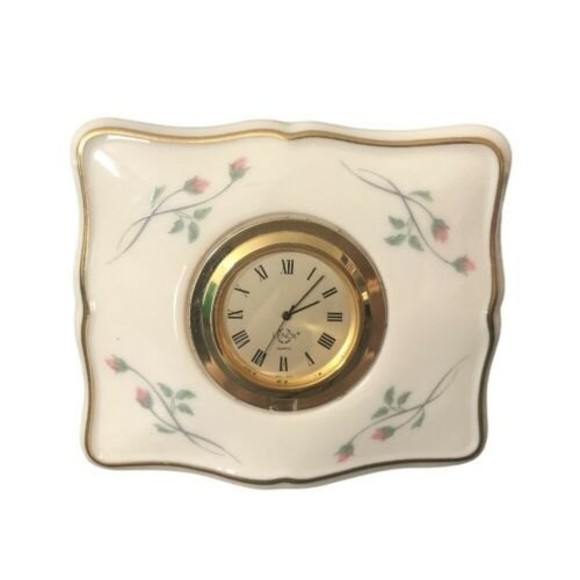 Vintage Lenox Porcelain Table Clock Rose Manor Pattern - Pink Rosebuds - Quartz. No grazing or chipped. Clock needs battery.