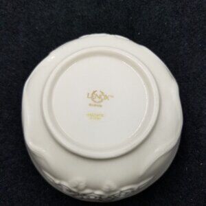 Vintage Lenox Round Bowl Dish Embossed Rose Blossom Ivory Cream Gold Candy Nut