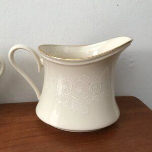 Vintage Lenox SPECIAL Etched Floral Ivory Gold Trim Creamer Sugar Bowl Set USA