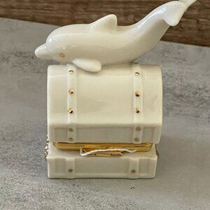 Vintage Lenox Treasures Dolphin's Hidden Treasure Box Hinged Lid with Charm