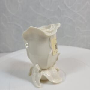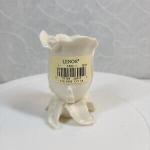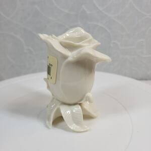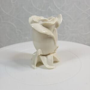 Vintage Lenox White Rose Bud Ceramic Candlestick 3" Ivory Glossy Candle Holder
