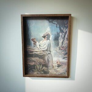 Vintage Lenticular Jesus Praying 3D Motion Wall Art Gethsemane Mid Century Relig