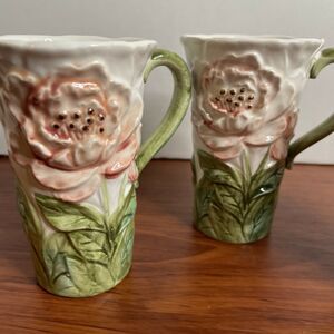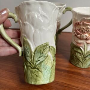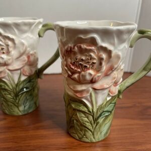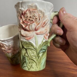 Vintage Lenwile Ardalt Artware Cup Ceramic Hand Painted Flower Pink Embossed 3