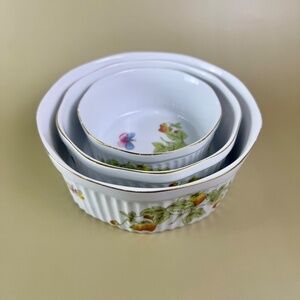 Vintage Lenwile Ardalt Nesting Bowls – Butterfly & Strawberry Porcelain Set of 3