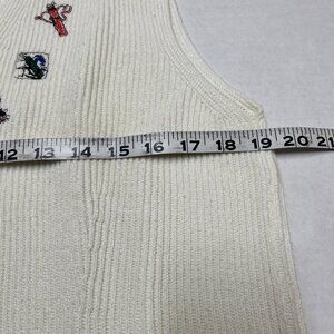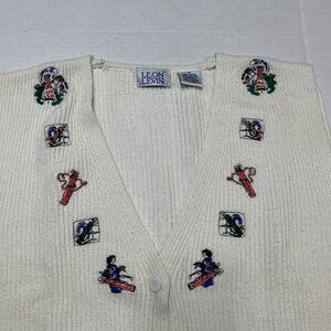 Vintage Leon Levin Sweater Vest Women M White Golf Theme Embroidered Button Down