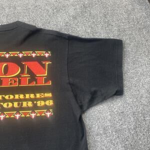 This vintage Leon Russell Plaza De Toros 1994 Mexico Tour shirt is a must-have for any fan of 90s music. Made of cotton with a graphic print design, this black shirt features a crew neck and short sleeves for a comfortable fit. The single-stitch construction adds durability, while the XL size ensures a relaxed and stylish look for men. And with a piece of American history from the United States, this shirt is a unique addition to any collection. Very good condition.