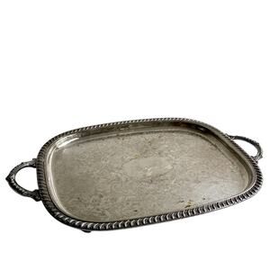 Vintage Leonard Silver Serving Tray Footed Side Handles Festive Holiday Platter