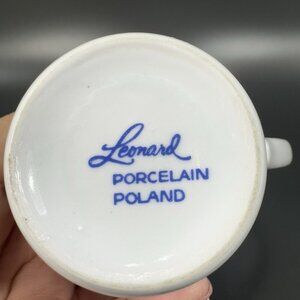 Vintage Leonard White Ceramic Coffee Mug Cup Set 2 Red Orange Band Mugs Cups Set