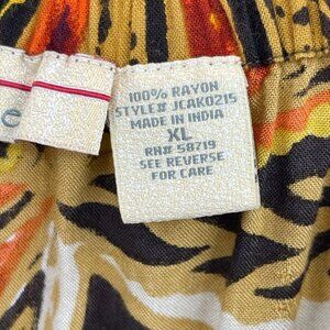 Vintage 90s animal print/ leopard print and batik maxi length A-line skirt in brown, orange & tan. Elastic waistband. Material is 100% woven rayon, made in India. Size XL. Please see photos for measurements.