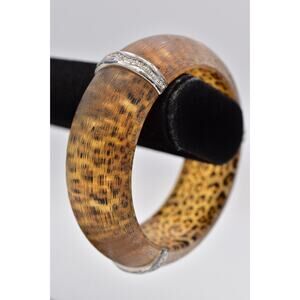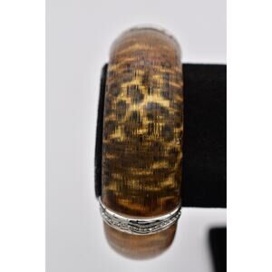 Vintage Leopard Bangle Bracelet Lucite Animal Print Thick Chunky 1990s Bin7