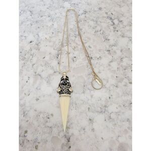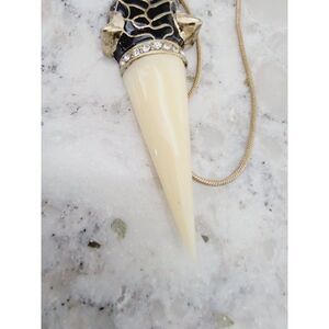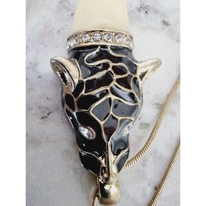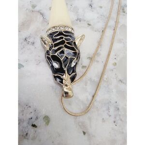 Add a unique touch to your jewelry collection with this vintage leopard pendant necklace. The necklace features a beautiful panther/Leopard and Bone pendant with round crystals in a gold tone metal setting. The pendant is a one-of-a-kind piece.