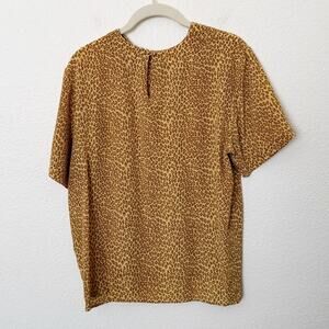 [Vintage] Leopard Print 100% Silk Crew Neck Animal Short Sleeve Blouse Sz Medium