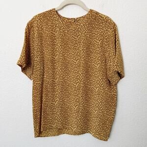 Vintage Size Medium 100% Silk Crew Neck Animal Leopard Print Short Sleeve Blouse
