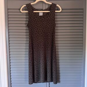 Vintage Rabbit Rabbit Rabbit brown and black leopard print mesh textured matching mini dress and button up cardigan. Size petite 4. Excellent condition.
