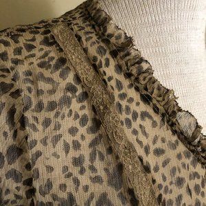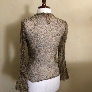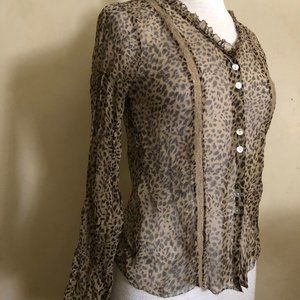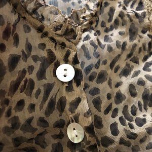 100% silk chiffon blouse with polished shell buttons. Fabric is see through. Will look great with black lace bralette.