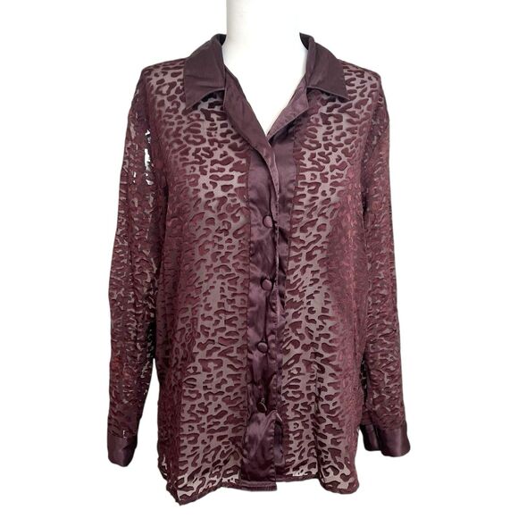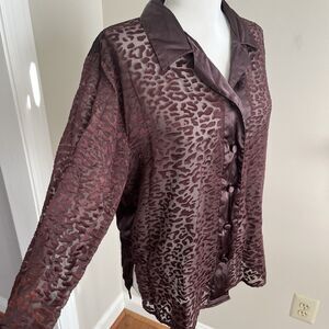 Vintage Leopard Sheer Tunic Top sz S Button Front Brown Mobwife Whimsigoth Fairy