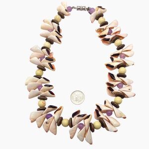 Vintage Les Bernard Statement Necklace Chunky Shell Beaded Collar Coastal Beach