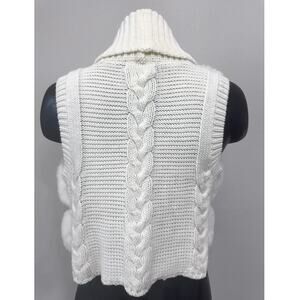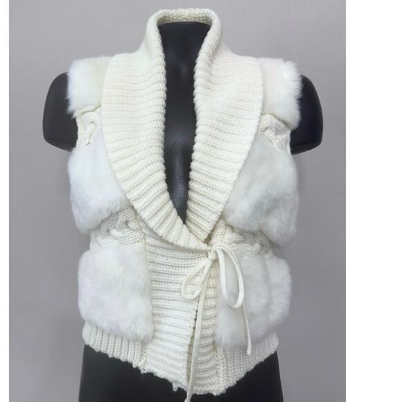 Vintage Les Tricots Faux Fur Wool Blend Cableknit Sweater Vest Sz S Tie Y2K Boho