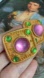 These stunning earrings feature a vintage-inspired design with a luxurious gold finish, highlighted by vibrant purple and green accents. Perfect for adding a touch of elegance to any ensemble.