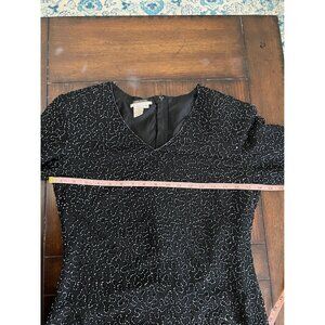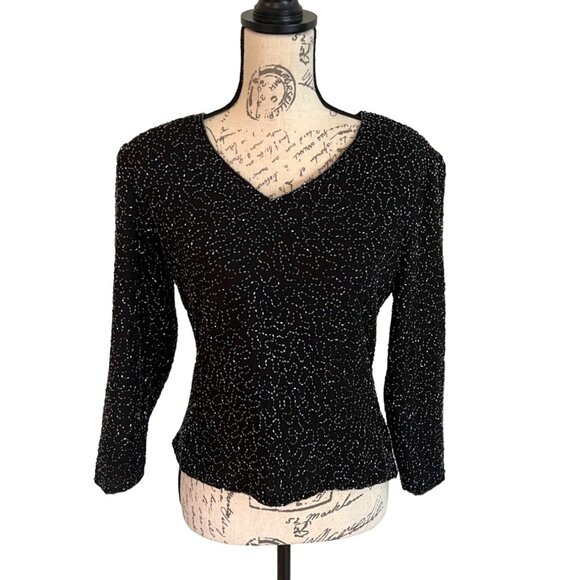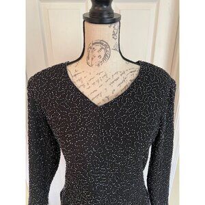 Vintage Leslie Fay Evenings Beaded Black Formal Long Sleeve Blouse Women's Size Medium