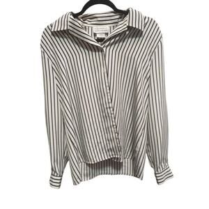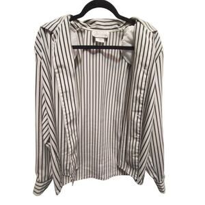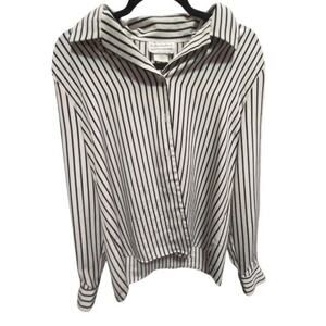 Vintage Leslie Fay Haberdashery Black Striped Button-Down Blouse Size 12 1980s