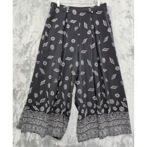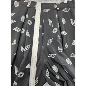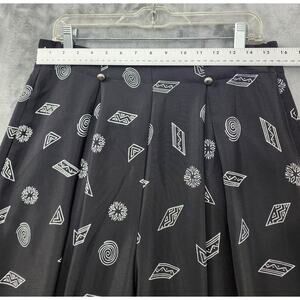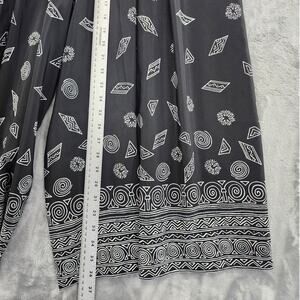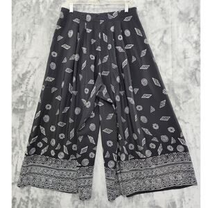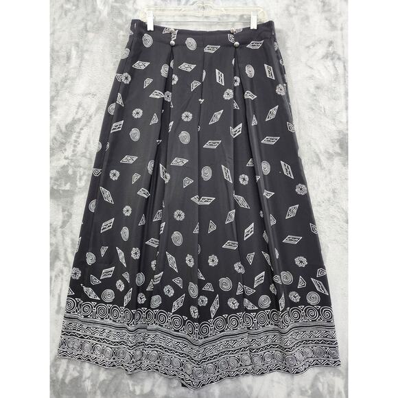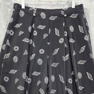 Vintage Leslie Fay Pants Womens 14 Black White Geometric Crop Wide Leg Culottes Palazzo Pleated Flowy Lightweight Side Button Double Hook and Bar Entry 90s Preppy Boho Casual