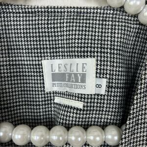 Good pre worn vintage condition. Vintage Leslie Fay petite collections houndstooth pattern relaxed blazer jacket. Size 8 petite. A lightweight and more casually relaxed style blazer. Front pockets. All sales final.