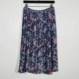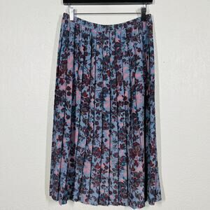 Vintage Leslie Fay Pleated Floral Skirt Midi Elastic Waist Blue Pink - 10