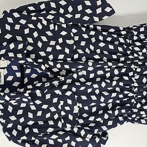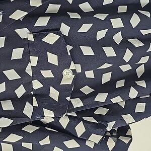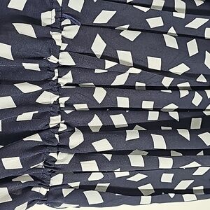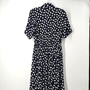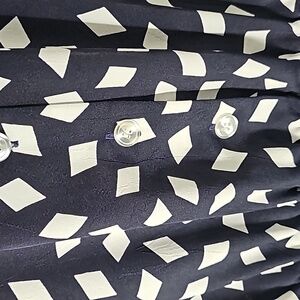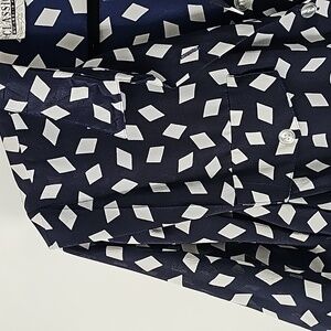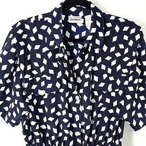 Leslie Fay CLASSICS Vintage Throwback Deep Dark Navy Blue with White Diamond Design Midi Shirt Dress with Collar. Structured Shoulder. Button Front Top to Waist. Elastic Waistline. Pleated Flowy Skirt. Short Sleeves & Faux Front Breast Pockets. Silky Textured 100% Polyester Hand Washable. Gorgeous! 22 Approx Measurements: Pit-to-Pit 22", Elastic Waist 15", Length 46". Check Out My Closet for More Fabulous Finds 🎊 Fast Shipping!! BUNDLE To Maximize Your Shipping Fee PLUS Earn Additional Discounts on Your Purchase 🥳