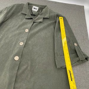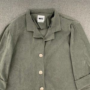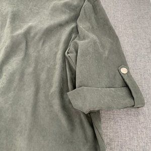 Vintage Leslie Fay Suede Button Down Blouse Green Sz 16WP Collared 3/4th Sleeves