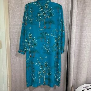 Vintage Leslie Fay Tropical Palm Tree Print Long Sleeve Shirt Dress Duster 16P