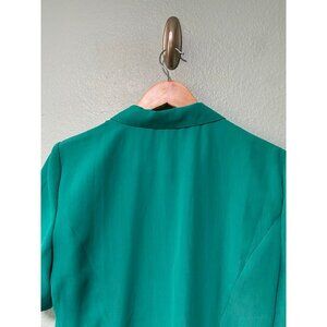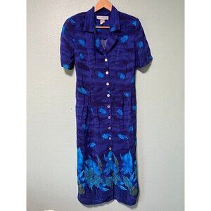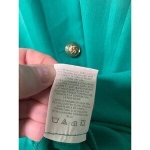 Vintage Leslie Fay Women's Teal Gold Pearl Button Up Midi Collared Dress Sz 12P