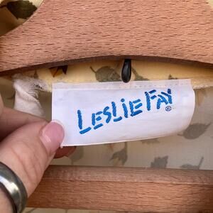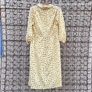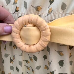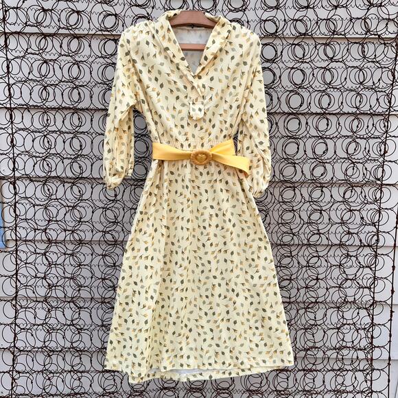 Vintage Leslie Fay floral feather leaf yellow belted dress