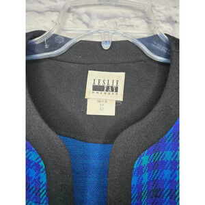 Vintage Leslie Fay plaid gingham blazer jacket blue office career size 12.