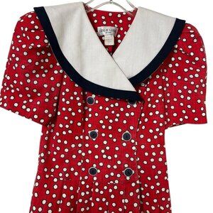 Vintage Leslie Lucks Petites Short Sleeve Red Polka Dot Dress - Size 2