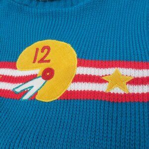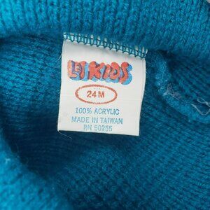 Vintage Let Kids Teal Knit Football Knit Sweater Pants Beanie Hat 70s Retro 24M