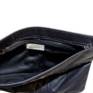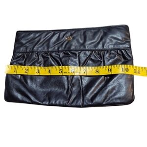 Vintage Letisse Black Faux Leather Pleated Clutch Retro Classic Preppy
