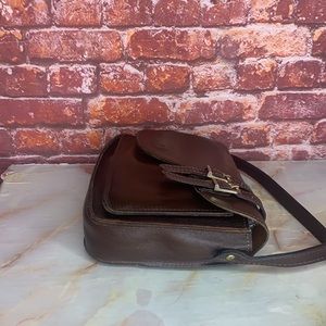 Vintage Letisse Walnut Brown Leather Courier Messenger Crossbody Bag