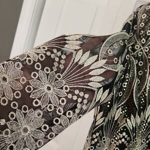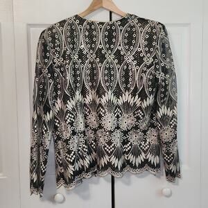 Vintage Let's Fashion Women's Black Silver Gold Semi-sheer Shimmery Jacket XL