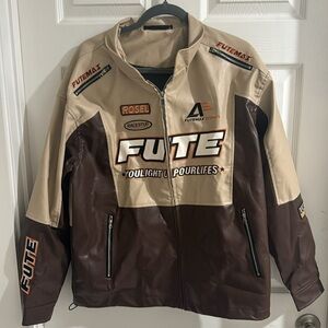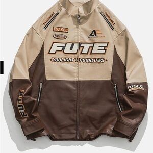 Vintage Letter Racer Jacket Levefly - FUTE Embroidery Print Leather Jacket sz S